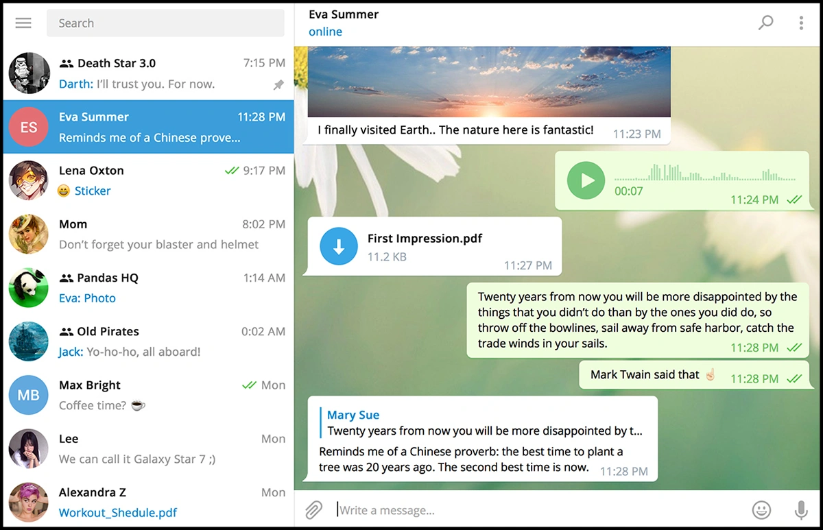 Telegram offers a wide array of messaging features, including text chats, voice calls, media attachments, and fun stickers, some of which can even be custom-designed by users.