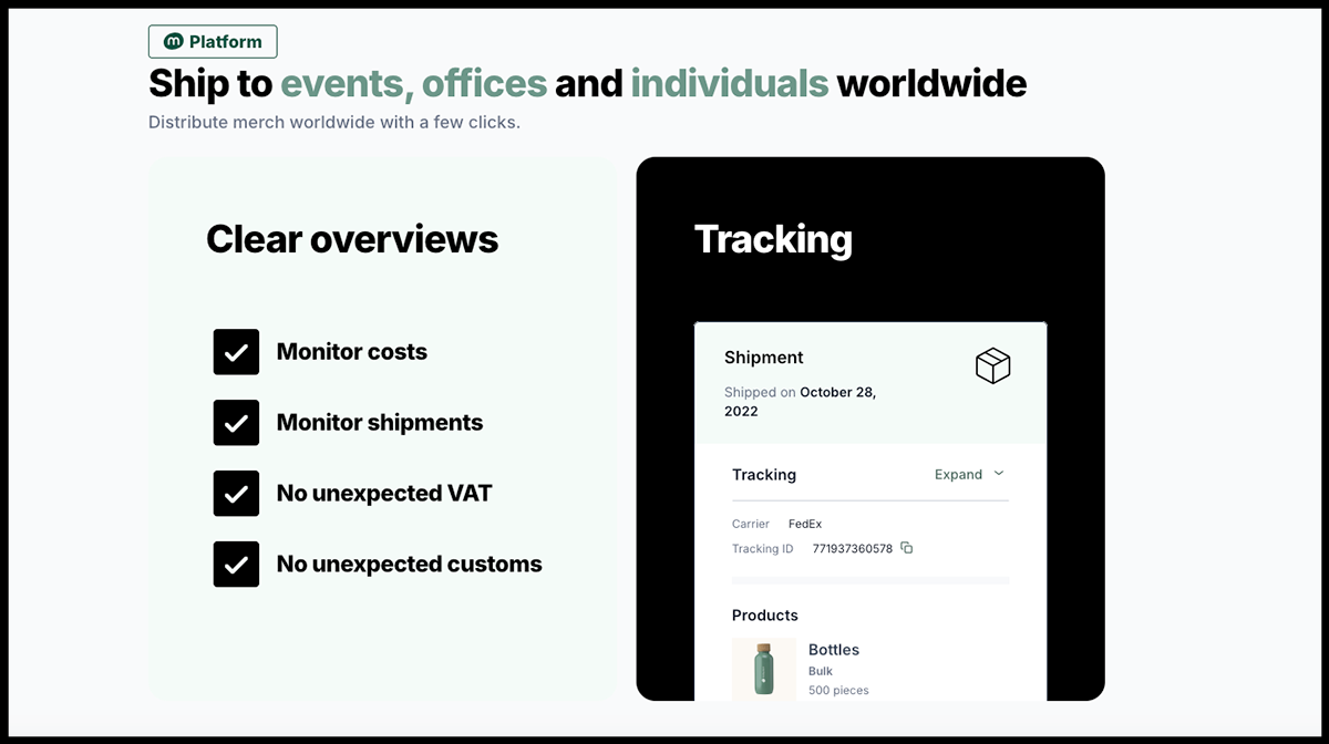 This makes it easy to offer company swag on demand without adding manual logistics to your plate.
