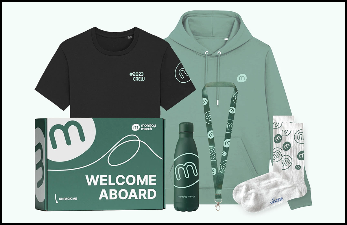 Platforms like Monday Merch make this easy, helping companies turn merch into meaningful moments with ready-to-ship onboarding packs and full-service support.