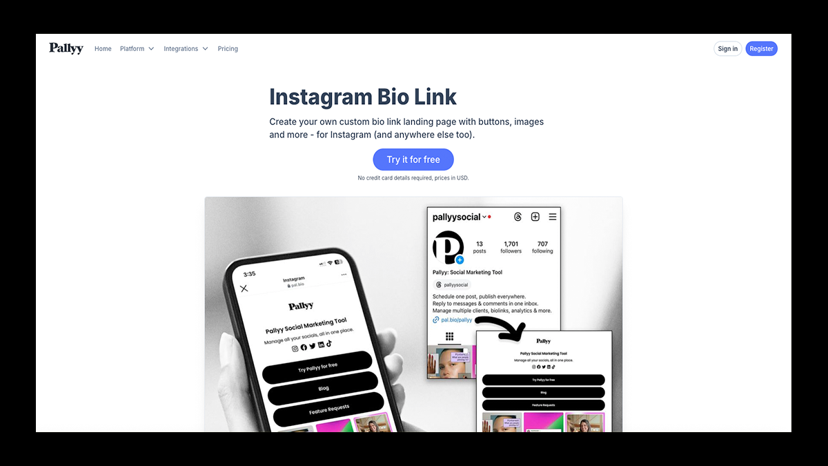 Pallyy is a visual-first social media platform that connects your Instagram feed, posting schedule, and link-in-bio into one cohesive workflow.
