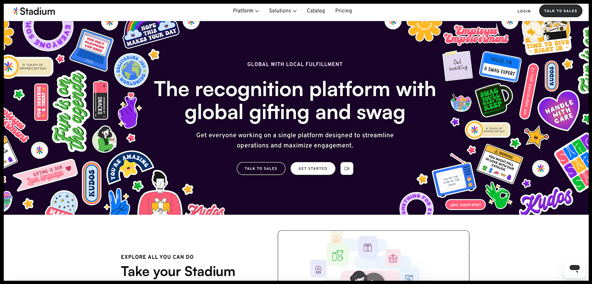 From branded shops to peer-to-peer rewards, Stadium provides HR teams, marketers, and culture leaders with the tools to recognize, celebrate, and connect with employees and clients, without ever packing a box.