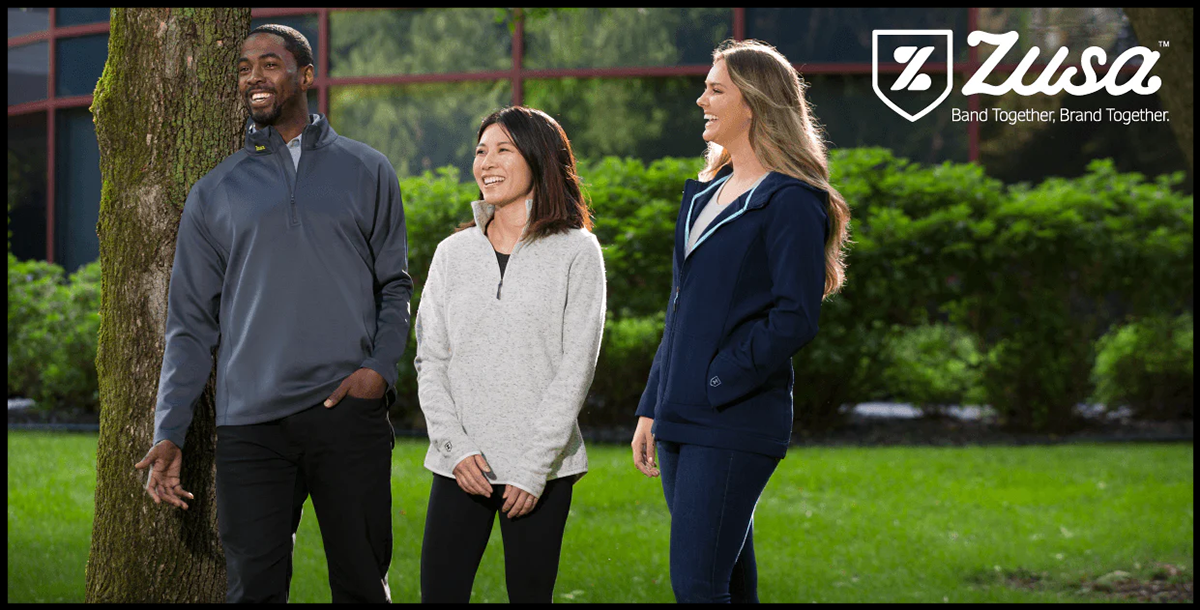 Zusa is Merchology’s in-house clothing brand built around sustainability and co-branding. 93% of its products are made from recycled materials, and every piece is designed with intentional blank space for your logo, blending eco-consciousness with function and style.