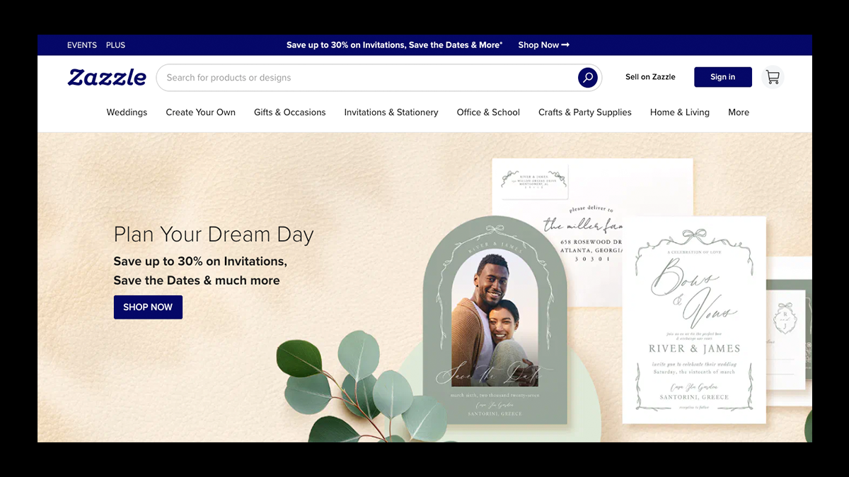With 1,000+ customizable products, from apparel and home goods to premium stationery with foil printing, it thrives on event-driven and giftable designs like weddings, birthdays, and corporate merch.