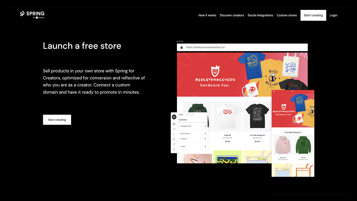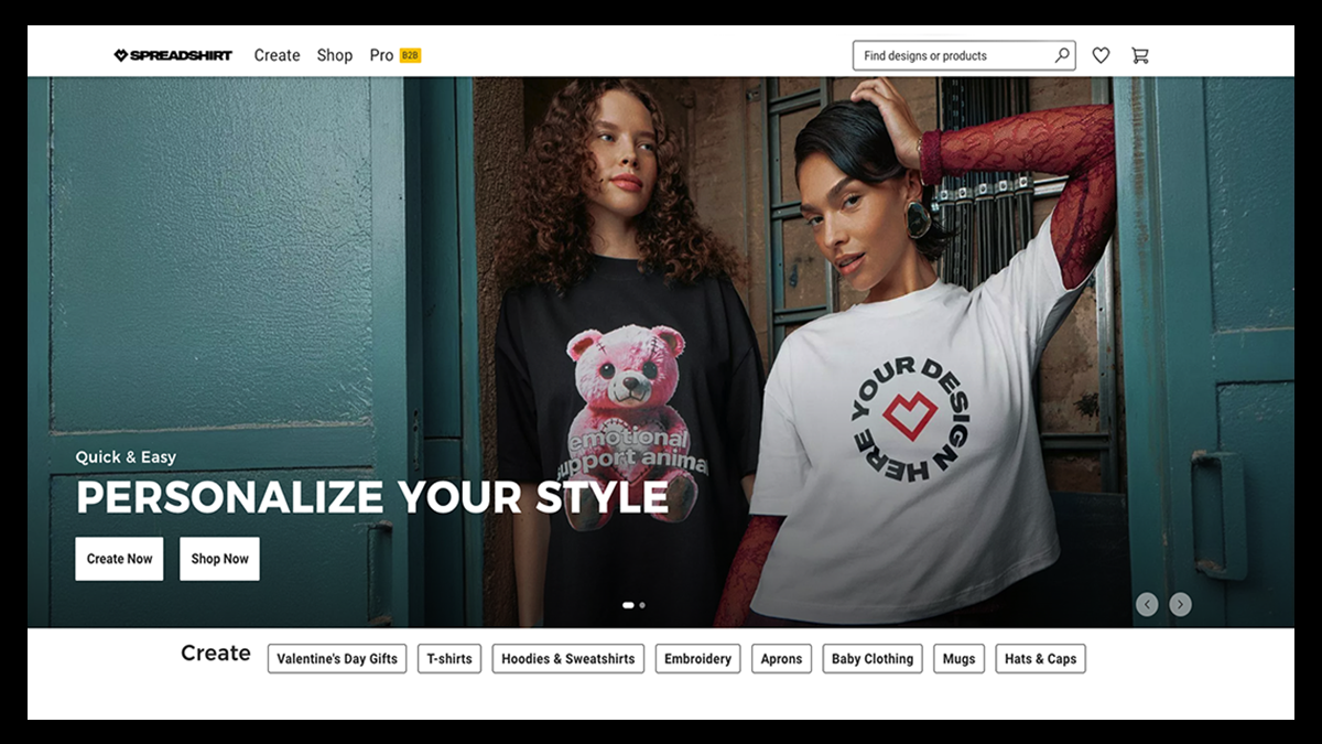 The platform combines storefront tools with print-on-demand fulfillment, allowing sellers to design and sell merchandise while production, packaging, and shipping are handled through fulfillment partners.