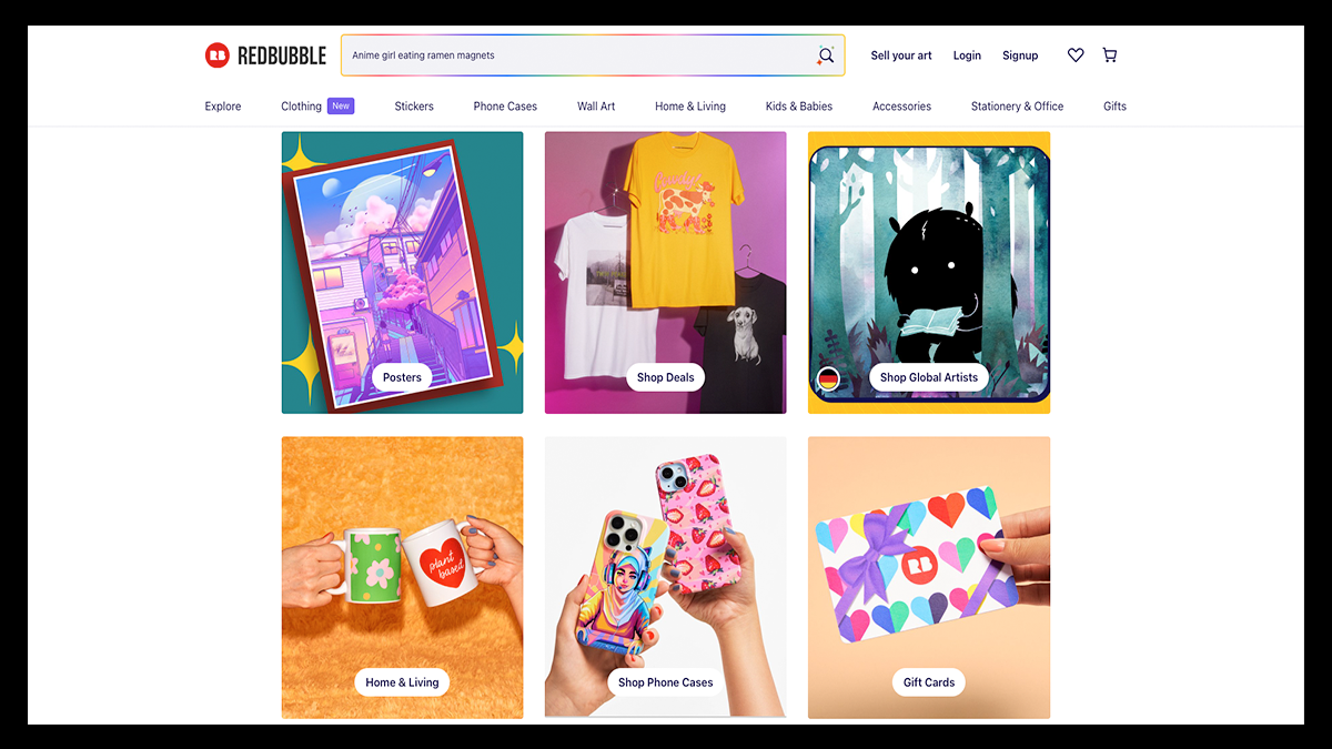 Redbubble is a print-on-demand marketplace where artists can upload original designs and have them automatically applied to a wide range of products without managing inventory or fulfillment.