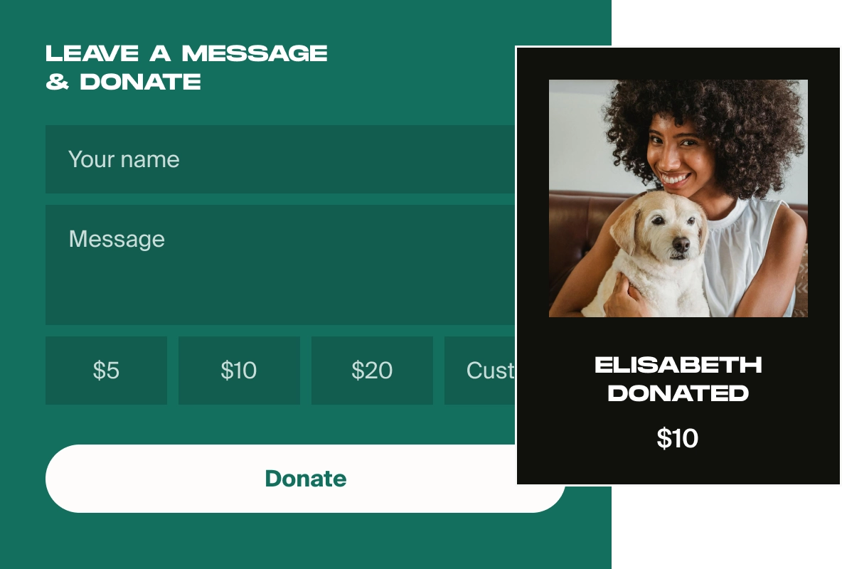 You keep 100% of what you make from donations (minus credit card fees), and fans can leave custom messages, making every contribution feel personal and impactful.