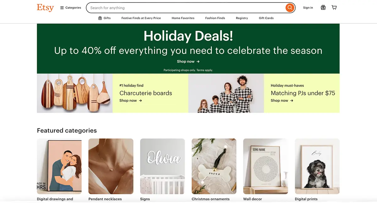 Etsy is ideal for artisans, crafters, and creators focused on selling handmade goods, vintage finds, unique items, or digital downloads who want instant access to a large audience. Its established customer base, supportive community, and marketplace structure make it a good choice for sellers looking for exposure without the complexities of running a fully-hosted store. While it lacks customization and charges fees, Etsy’s reach and focus on creativity make it a great alternative to Gumroad for creators prioritizing visibility and ease of setup.