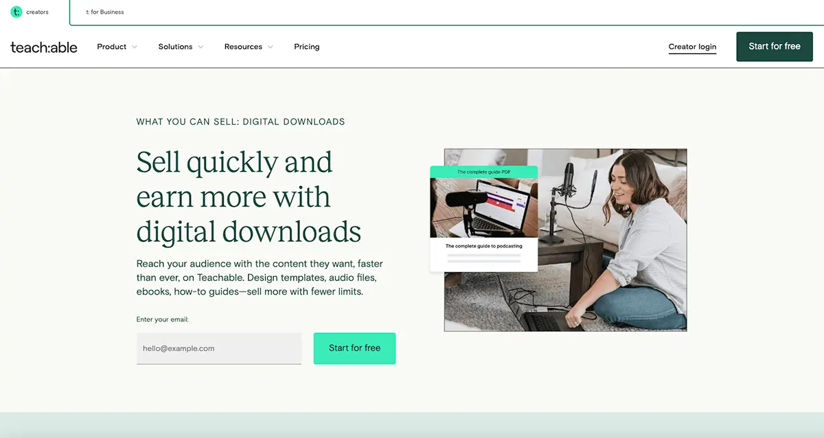 Teachable is another popular ecommerce platform focused on helping creators monetize their expertise by offering online courses, coaching, and digital downloads. Known for its user-friendly setup, Teachable allows teachers, coaches, and creators to build, host, and sell unlimited courses without needing technical skills. With built-in email marketing and analytics, Teachable provides tools for audience engagement and course optimization, making it a strong alternative to Gumroad for those looking to sell knowledge-based content rather than physical products.