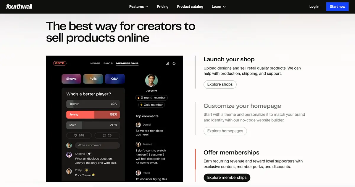 With Fourthwall, you gain more than a platform—you gain the flexibility to create a complete brand experience. Get started today and transform your creative vision into a sustainable, profitable business.
