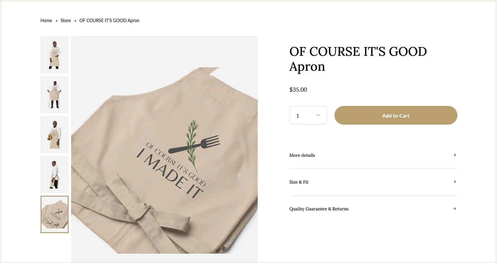 TikTok home hook Jess branded her own chef’s aprons using Fourthwall’s design tools and print on demand capabilities.