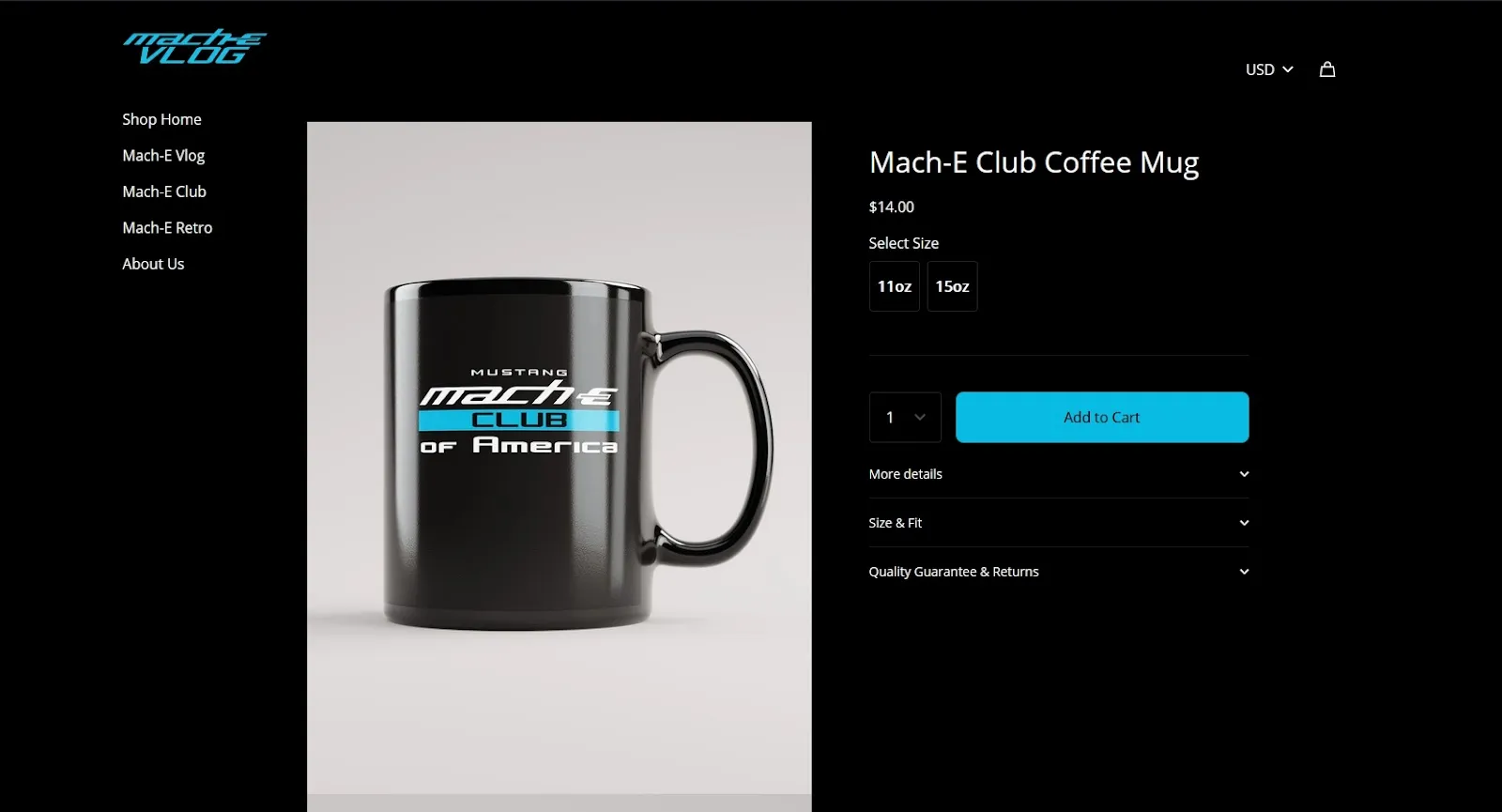 The Mach-E Owners Club (U.S. and Europe) uses Fourthwall to customize their club’s coffee mugs.