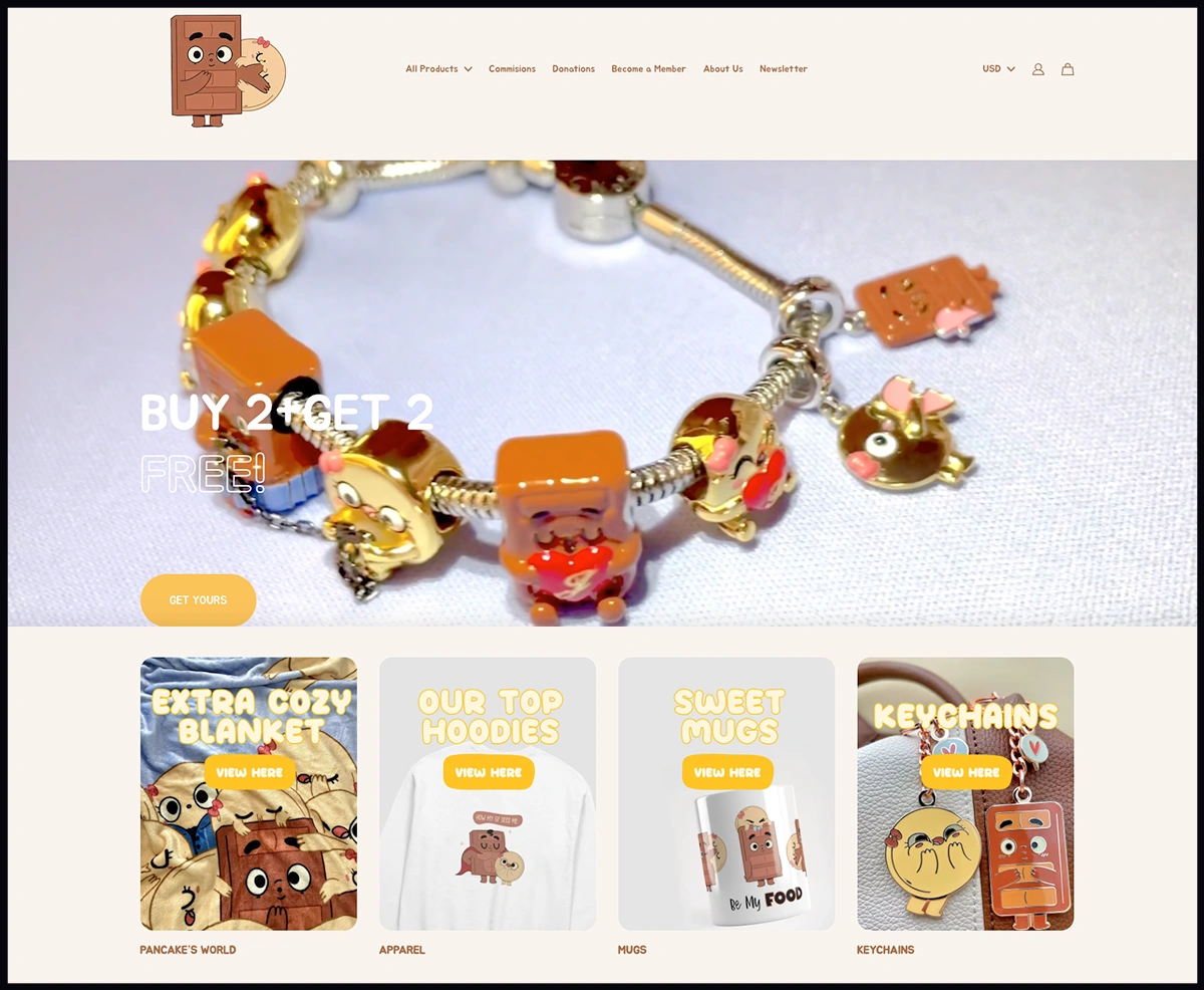 You can snag adorable merch like jewelry, cute mugs, phone cases, and stickers that channel Choco and Pancake’s charm. Or, you can even go bigger with personalized commissions for a custom art piece of you and your loved one.