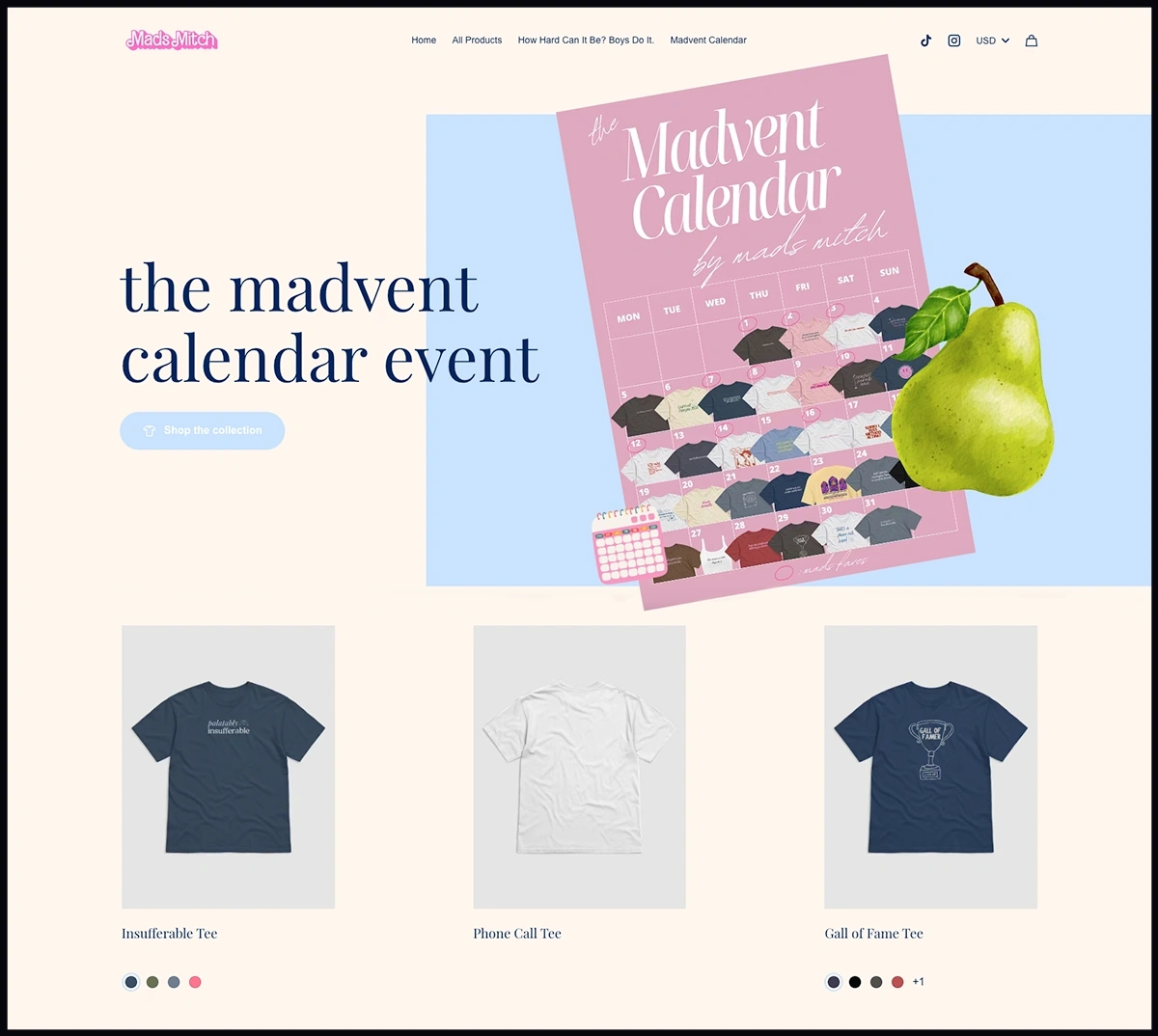 By keeping her designs straightforward and her shop easy to browse, Mads proves that sometimes all you need is a catchy slogan, quality basics, and a reliable platform to turn a viral moment into wearable, shareable fan pride.