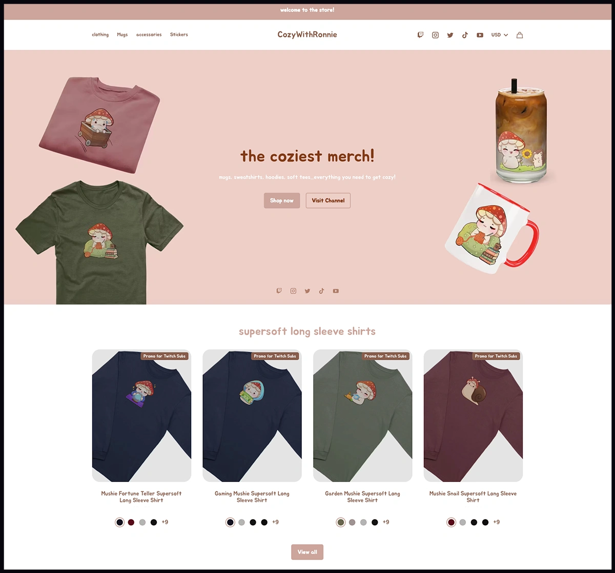 If you’re looking for a merch shop that perfectly mirrors the creator behind it, CozyWithRonnie might be the coziest example out there.