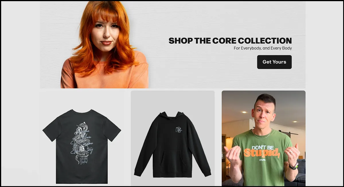 For example, Philip DeFranco offers a collection of custom-designed shirts through his online shop, Beautiful Bastard. His tees feature bold graphics and clever phrases that reflect his brand's edgy and unique style, which appeals to his loyal audience.