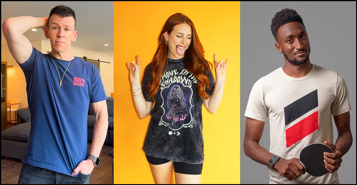 For example, creators like Marques Brownless, aka MKBDH, focus on tech-themed shirts, such as his Parallelogram T-shirt, while YouTubers Hailee and Kendra target lifestyle and relationship-based designs with their Hey Babe tee, which takes inspiration from the Nickelodeon series Rugrats.