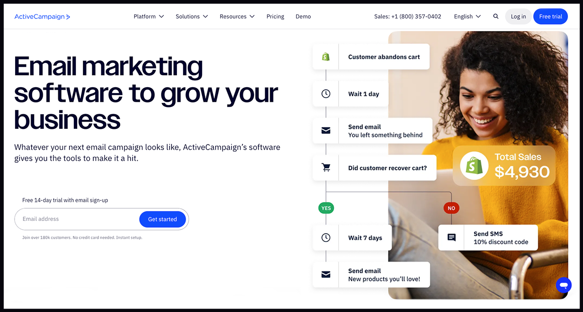 If you want maximum control, deep data insights, and integrations with over 900 apps, ActiveCampaign makes managing your email campaigns, sales pipelines, and follow-ups effortless and effective.
