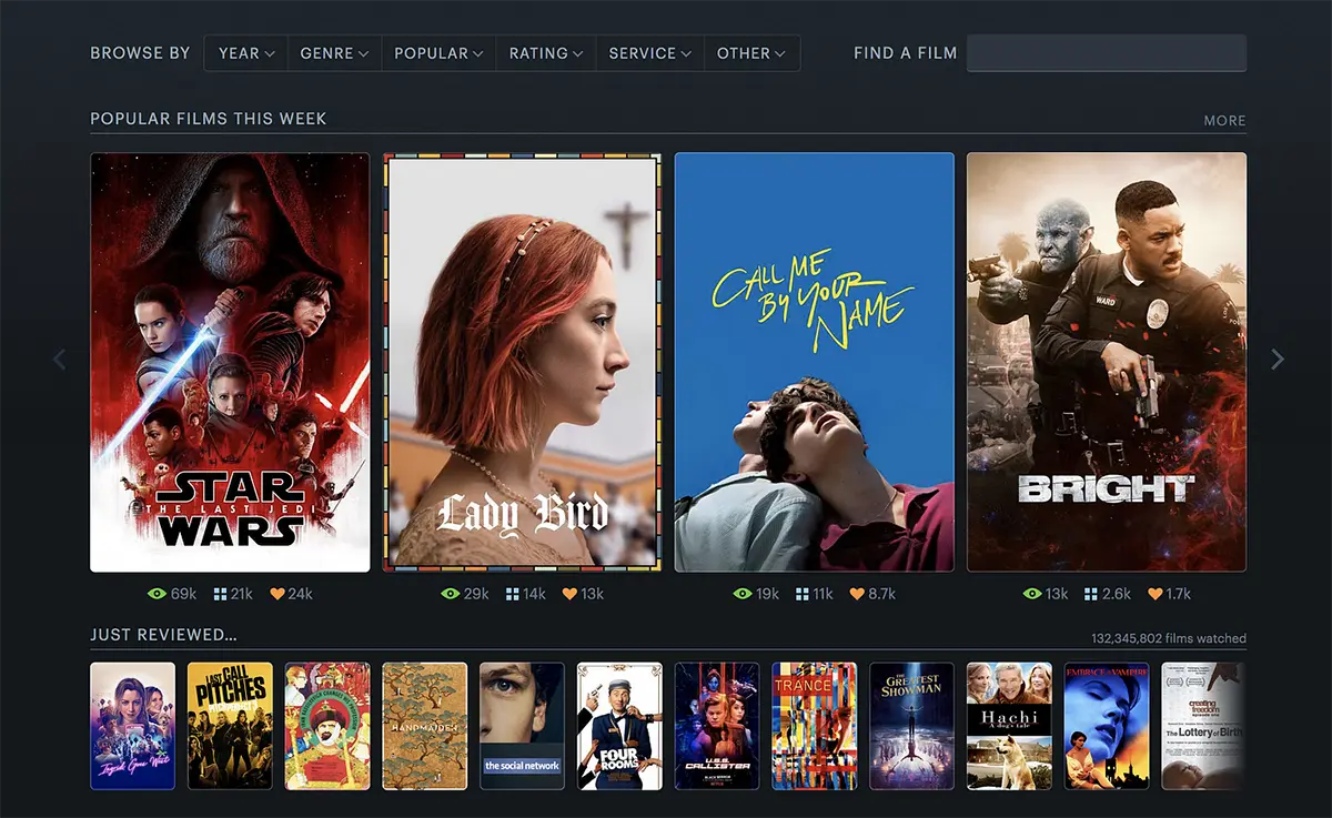 Launched in 2011, Letterboxd is a dedicated space for film enthusiasts to log and review movies, follow like-minded cinephiles, and discover new titles through a rich network of recommendations.