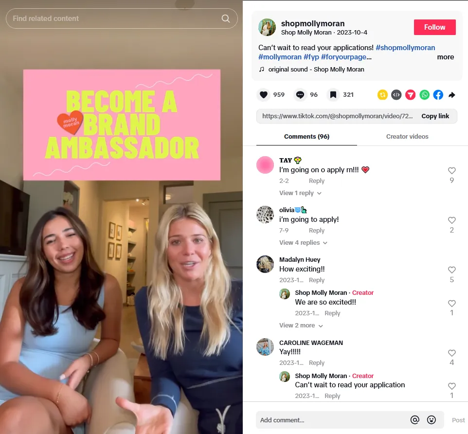 Your brand ambassadors can generate fun, fresh content like reviews, testimonials, and social media posts - everything from simple demos of your products to viral dances highlighting your brand! - saving you time, effort, and resources on content creation. UGC (user-generated content) enhances your brand image even more by putting you right in the thick of the trending socials that millions of people view daily.