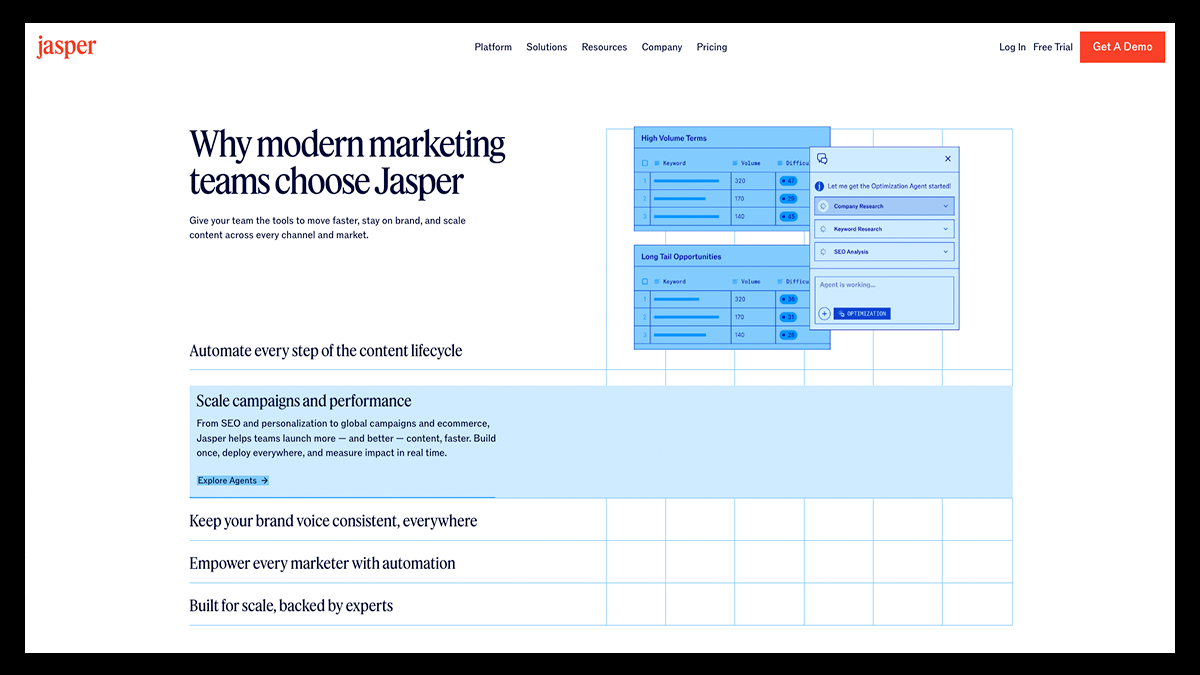 Jasper AI is a marketing-focused AI platform built to help brands create high-performing, search-optimized content at scale.