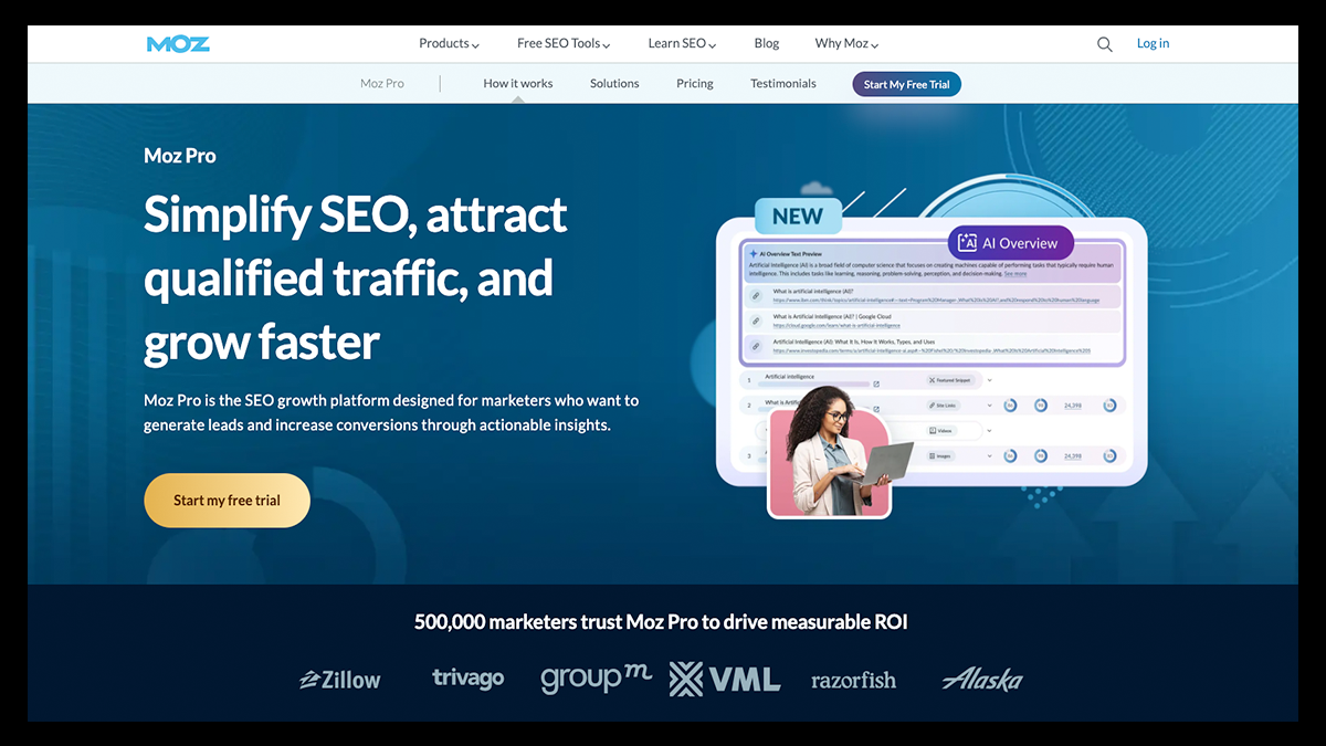 And with a generous free trial and tools designed for both beginners and advanced teams, Moz Pro offers tailor-made content that aligns with search intent and helps drive traffic straight to your site.