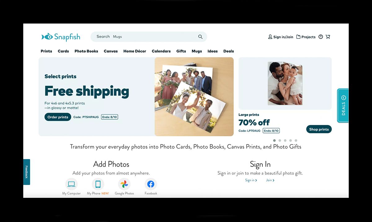 From photo books and prints to mugs, cards, and wall decor, Snapfish makes it easy to design personalized gifts using a simple, user-friendly interface.