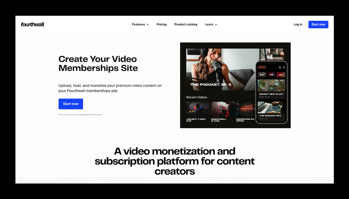 Although not as advanced as most of the platforms on this list, Fourthwall offers a polished, no-code website that allows video creators to upload and organize 1080p videos, create Netflix-style collections, and secure content behind paywalls or membership tiers.
