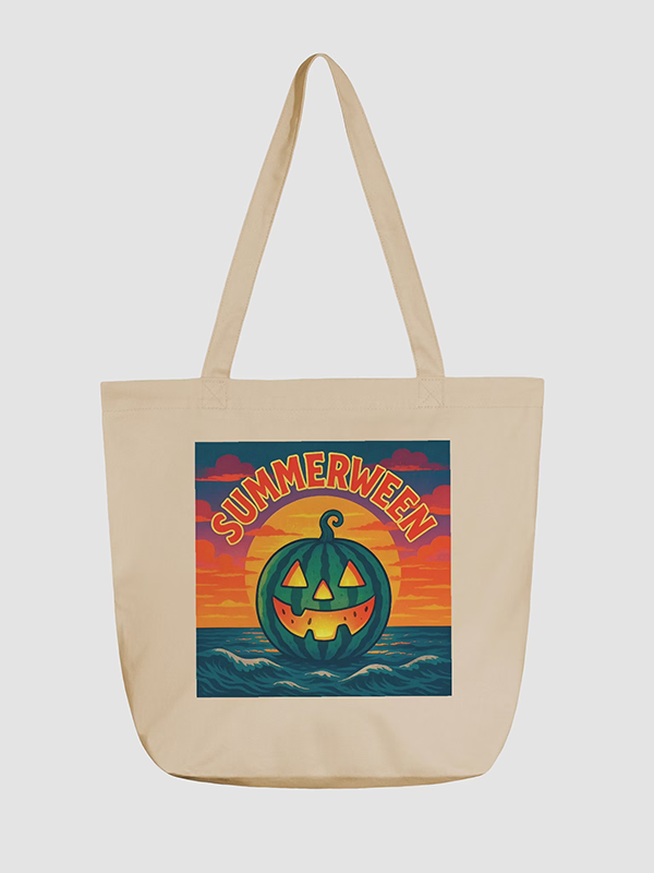 Fourthwall’s all-over print large tote with pocket is perfect for bold designs like full-print jack-o’-lanterns or custom lettering for personalization, while our eco-friendly totes provide a sustainable option for playful artwork like cartoon ghosts or witty Halloween slogans.
