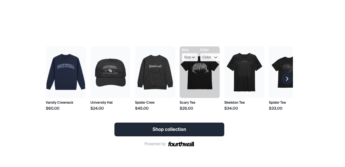 You can choose from any active product collection in your Fourthwall store—merch, digital goods, memberships, and more.