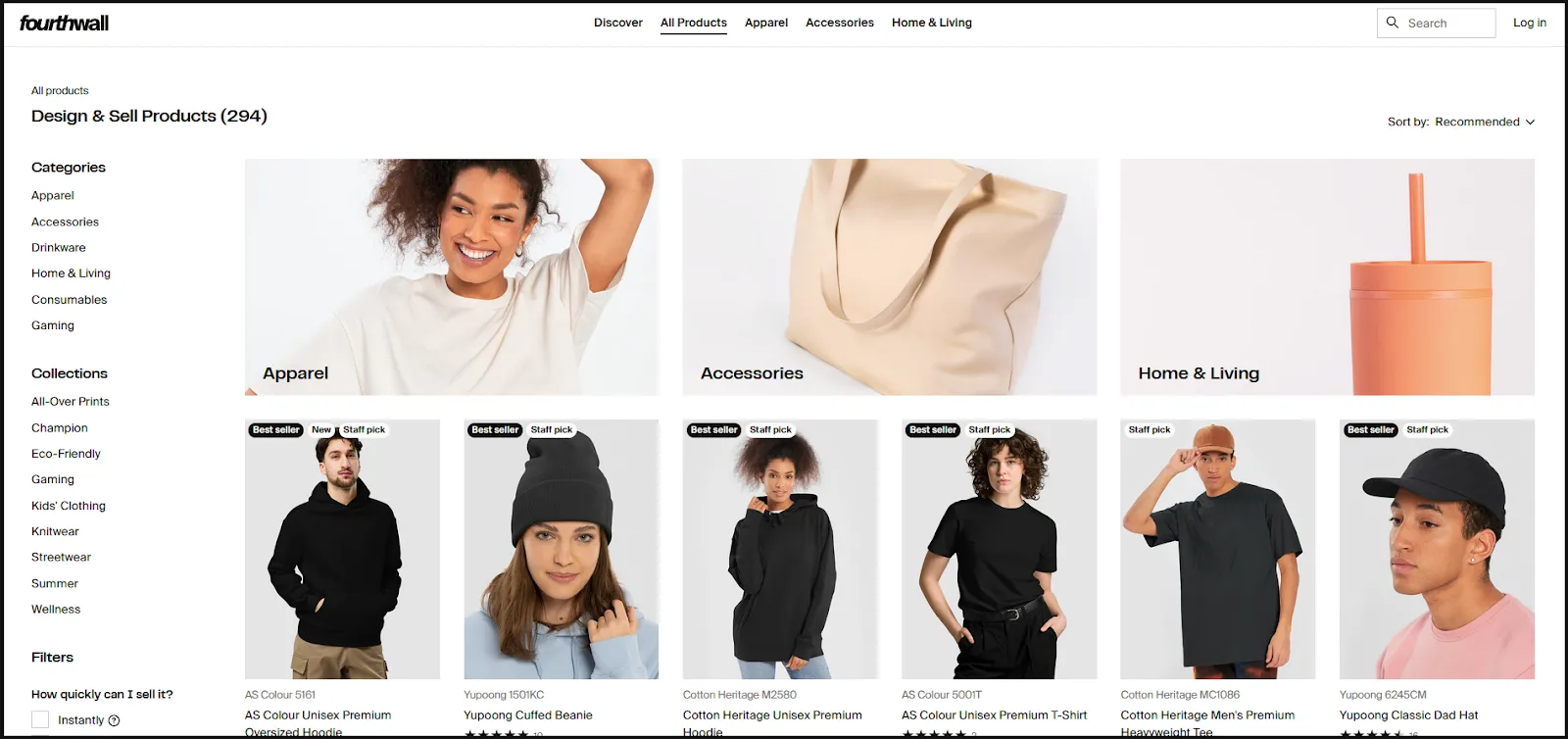 A huge range of print on demand products can be designed, customized, made, and shipped through ecommerce sites like Fourthwall. T-shirts and other apparel, coffee mugs, stickers, posters, and home decor items are just a few of the profitable product ideas you can create.