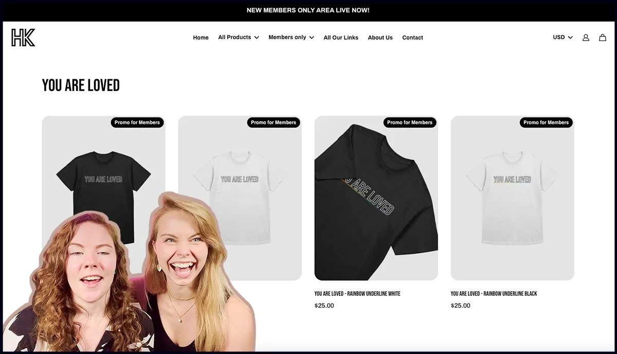 The move to Fourthwall allowed Hailee and Kendra to finally unify their merchandise and memberships under one roof. With their personalized Fourthwall website and mobile app, the couple were allowed to offer their followers an immersive experience.