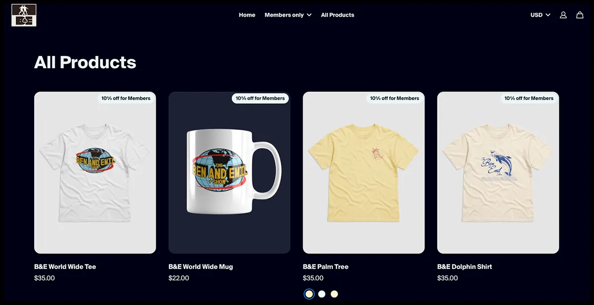 To address their ongoing technical and community issue, Ben and Emil turned to Fourthwall, where they launched their new site - benandemilshow.com.