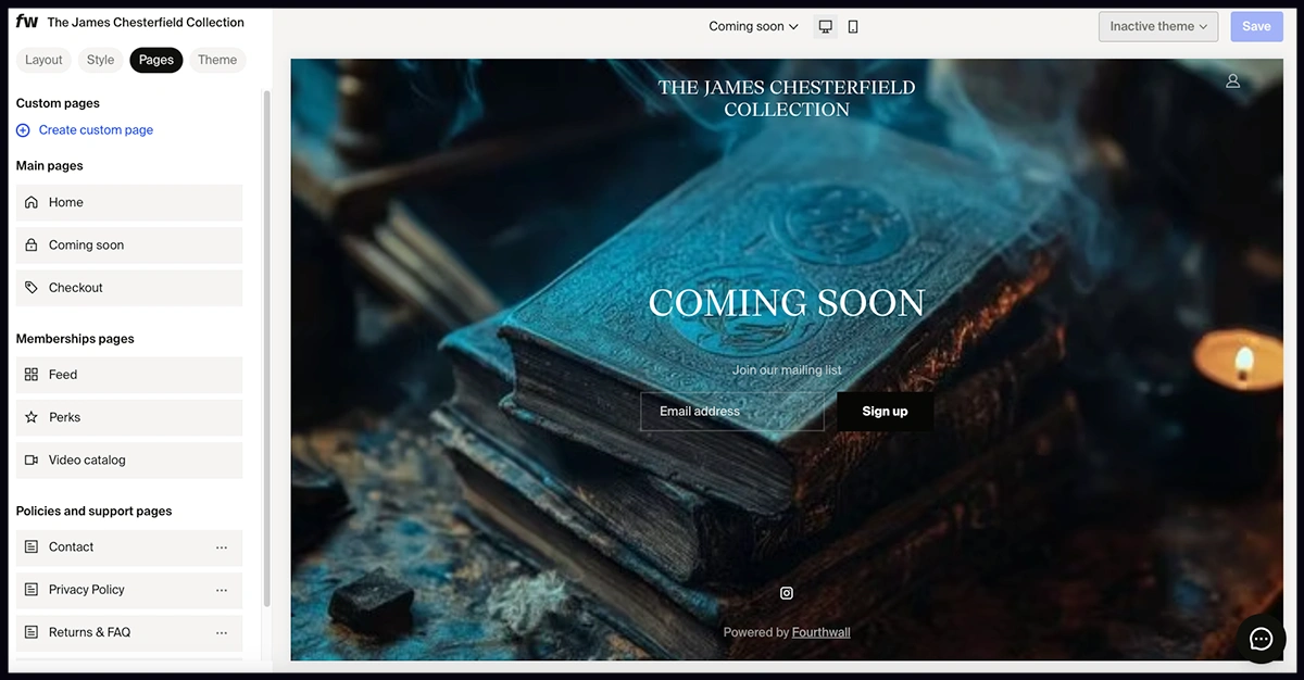 Fourthwall’s drag-and-drop builder makes customization easy, even if you’ve never built a site before.