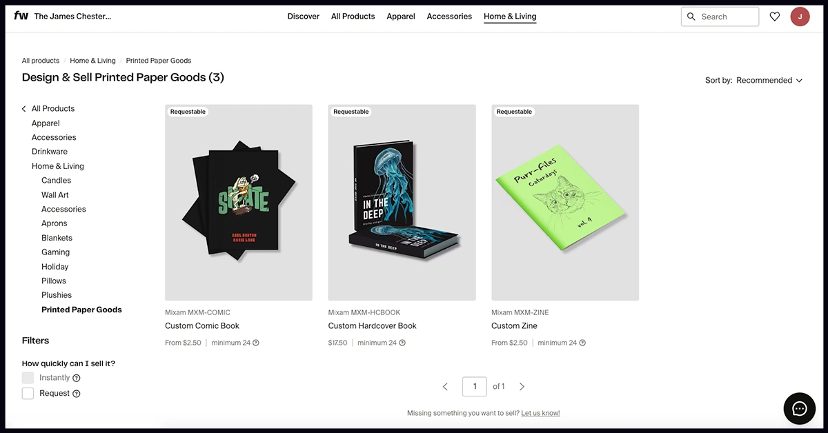 If you’re offering printed books, whether it be hardcovers, paperbacks, zines, or comics, Fourthwall lets you create custom listings for your self-sourced inventory.