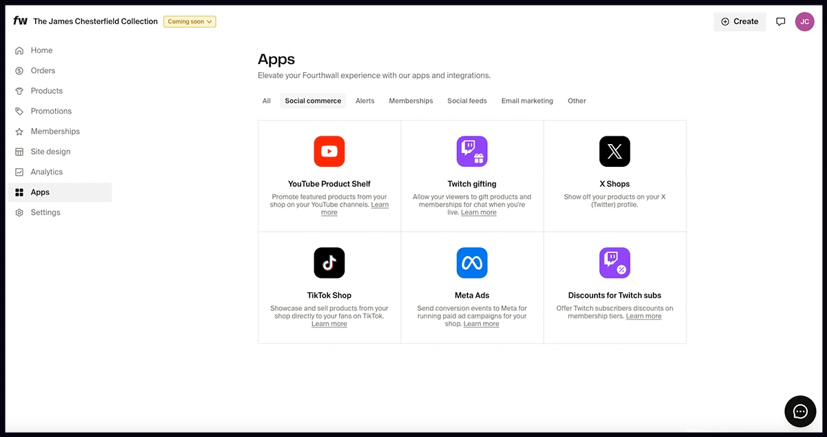 One of the best perks of using Fourthwall is the ability to connect your storefront directly to your social media.