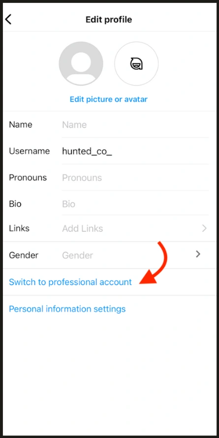 Go to your profile and click on the “Edit Profile” button located near your profile picture. This is where you’ll find the option to switch to a professional account.