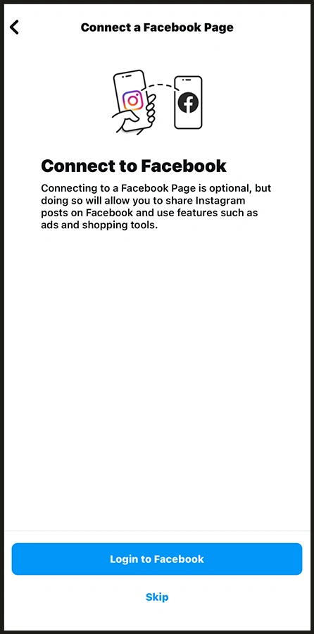 Link your Instagram account to a Facebook Business Page for streamlined ad management and access to additional features. If you don’t have a Facebook Page yet, you can create one during this step. While this step is optional, it allows for better integration and a more comprehensive marketing strategy across Meta platforms.