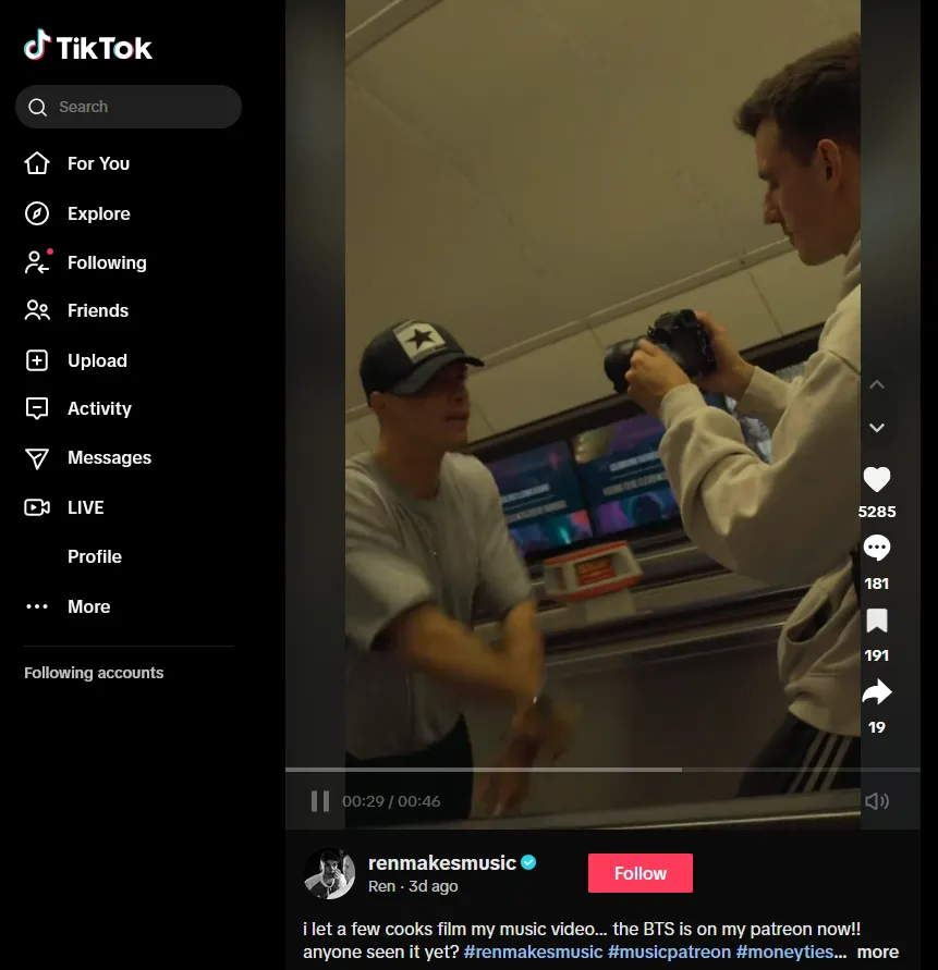 This kind of cross-promotion welcomes viewers who might not be active on TikTok, increasing your video's visibility and engagement rate and potentially even growing your TikTok audience with people who are already your fans.