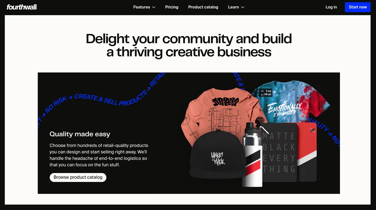 Whether you're looking to create stylish t-shirts, cozy hoodies, or vibrant wall art, Fourthwall's user-friendly interface simplifies the design process, allowing you to focus on creativity without any technical barriers