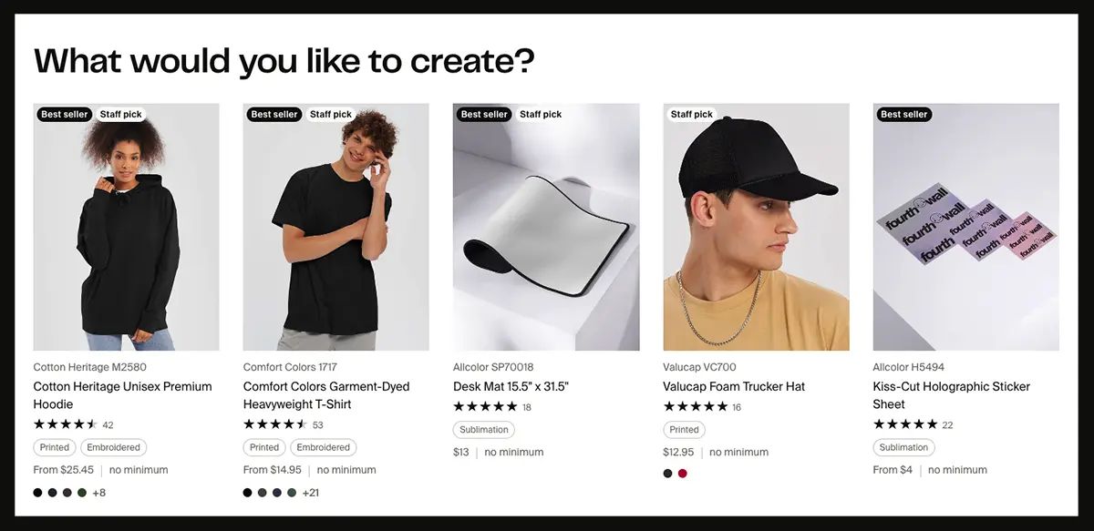 With Fourthwall's extensive product catalog at your fingertips, you can explore a diverse range of customizable items, including apparel, accessories, home decor, and more.
