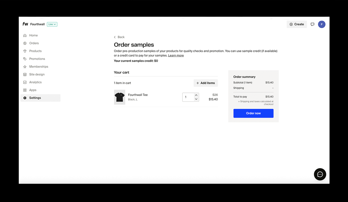 Before promoting your merch, it’s a smart move to order samples and check the print quality, fit, and materials yourself. Fourthwall has no minimum order requirements, so you can grab just one hoodie, shirt, or mug to ensure everything looks and feels exactly how you want before launching it to your audience.