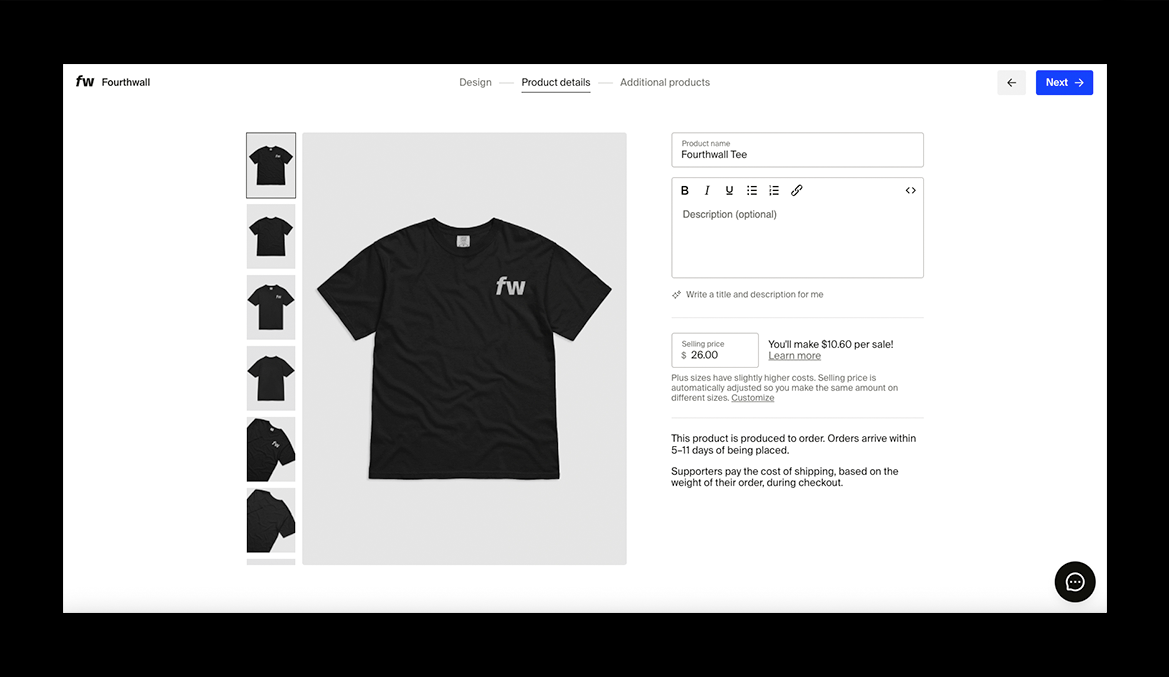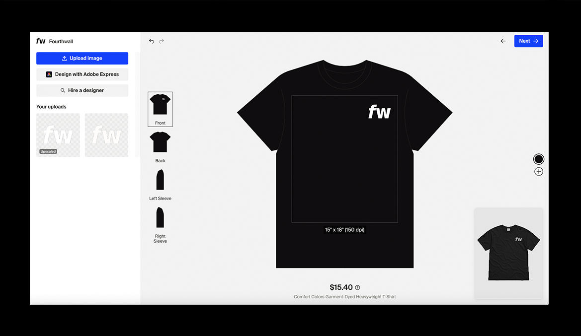 Use Fourthwall’s built-in mockup tool to apply your design to the products you’ve selected.