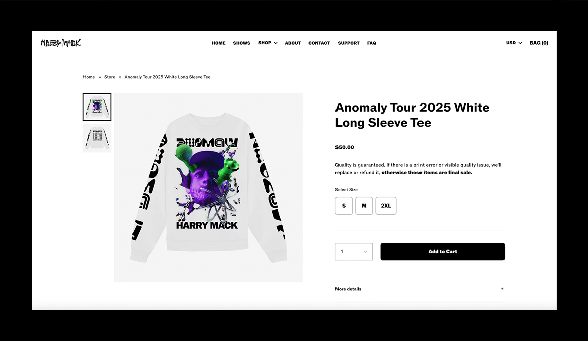 By blending performance-driven designs with high-quality apparel and accessories, Harry has created merchandise that feels like an extension of his artistry and live show experiences.