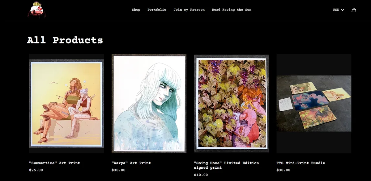Turn your creativity into a business by launching an online store that sells physical merchandise such as T-shirts, posters, mugs, stickers, and more.