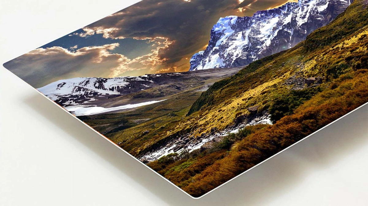 These prints are produced by infusing dyes directly onto a metal surface, which results in a glossy finish and a depth of color that’s hard to match.