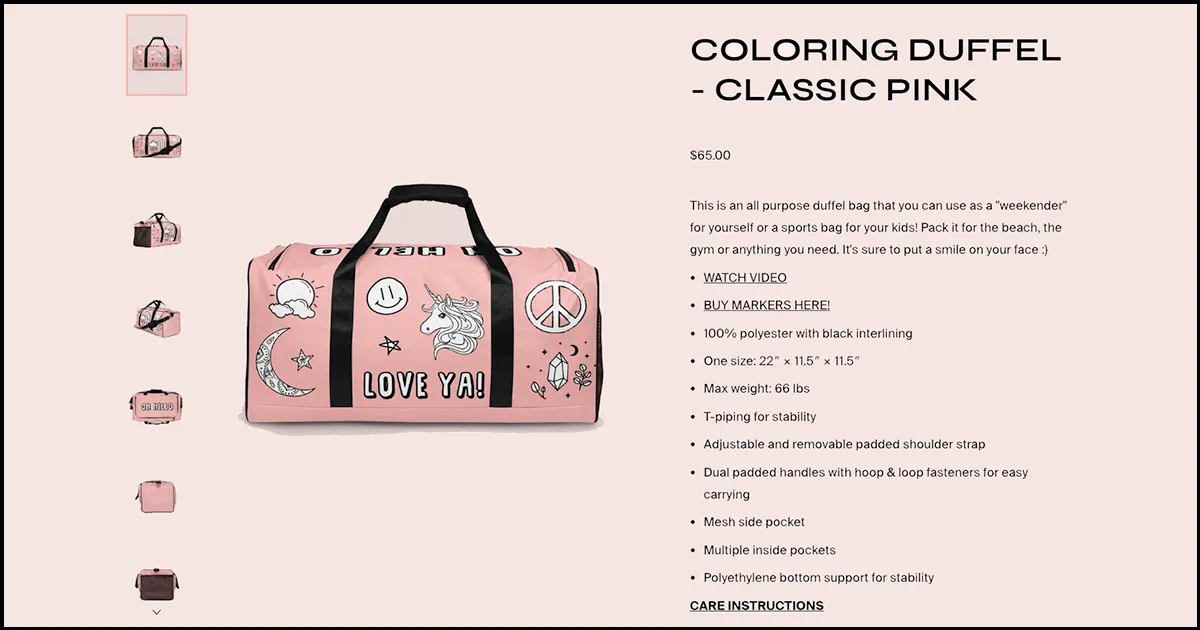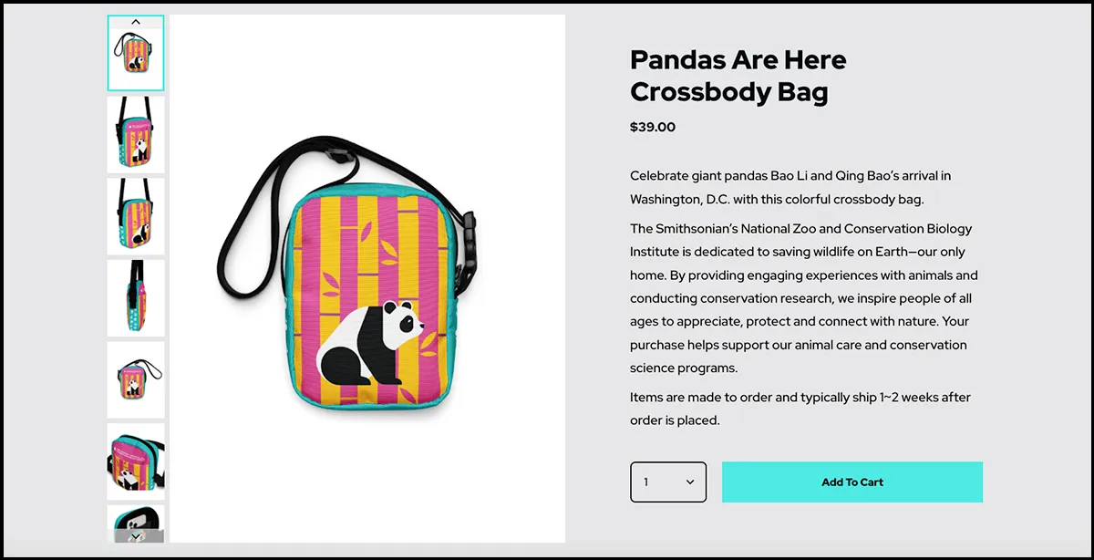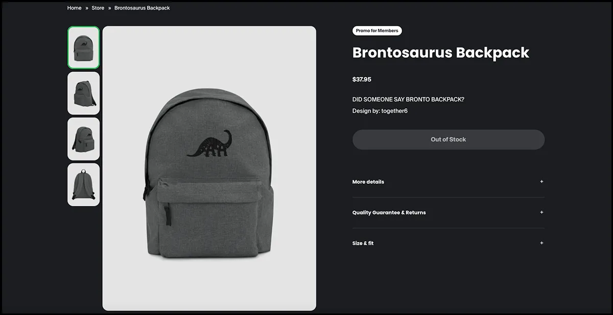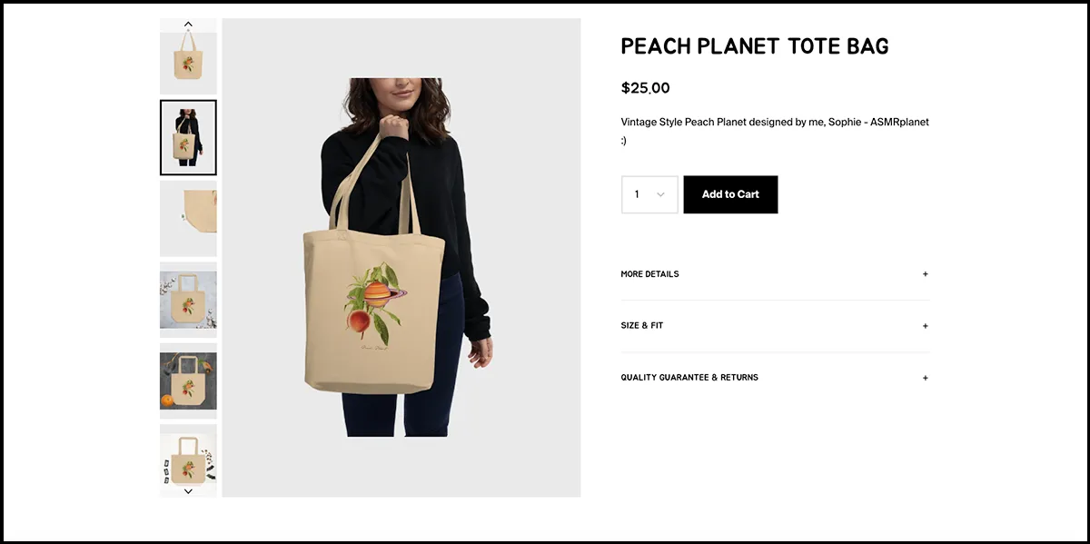 With Fourthwall, you can showcase your custom designs for various types of bags, like crossbody bags and duffle bags, with high-quality images and descriptions.