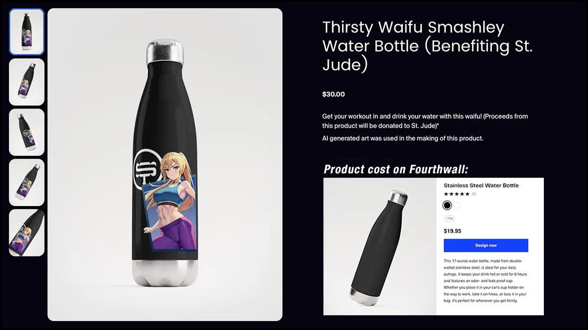What's great about Fourthwall is that it's also a POD service, so you can purchase, design, and sell your water bottles all on one platform.