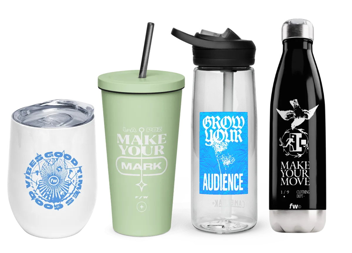 Platforms like Fourthwall allow you to upload your designs, which they then print on water bottles as orders come in.