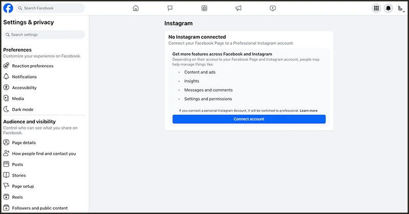 If your brand already has its own Instagram business account, link it to your Facebook business page. This integration enables you to manage posts, ads, and messaging from one place. It also enhances your reach across multiple social media platforms.