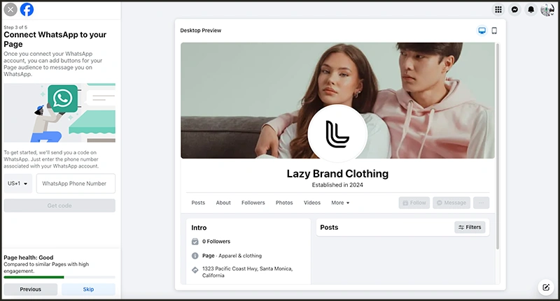 Integrating WhatsApp with your Facebook busines page allows you to connect with customers in a fast and personal way. Just enter your WhatsApp business number and verify it using the confirmation code sent to your phone. Once connected, your customers can easily click a button on your page to start a conversation with you directly through WhatsApp.